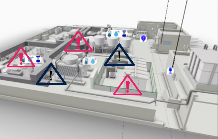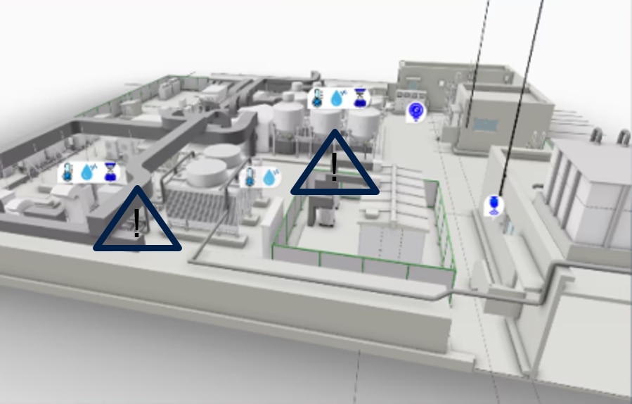 IoTセンサーのリアルタイム値をBIM上で可視化し、異常値の予兆をキャッチ。トラブル発生前に計画的な保全が行えるため、突発的な停止を防ぎ、生産機会の損失を防ぎます。